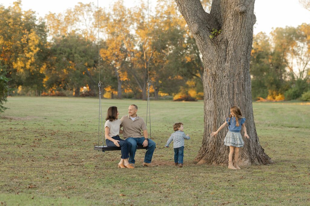 Instead of asking your kids to sit still and smile, let’s play! Games like “ring around the rosie,” “Simon says,” or a simple tickle fight help bring out those real giggles. As a Shreveport family photographer, I love capturing kids running, jumping, and showing their personalities. The more fun they have, the more natural your photos look.