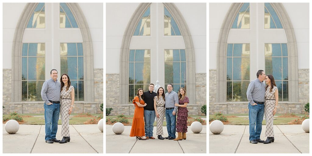 Photographing outside a church adds a layer of emotion that’s hard to describe. The architecture, the meaning, and the sense of peace combine to create something truly special. Whether families come here to celebrate milestones, holidays, or simply gather for portraits, this setting always tells a story of connection and faith.