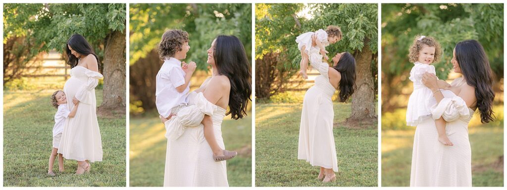 Simple activities like spinning, walking together, or asking toddlers to hug mom’s belly can turn the session into a fun experience rather than a task. These playful moments help children stay engaged while also creating beautiful, candid photographs.